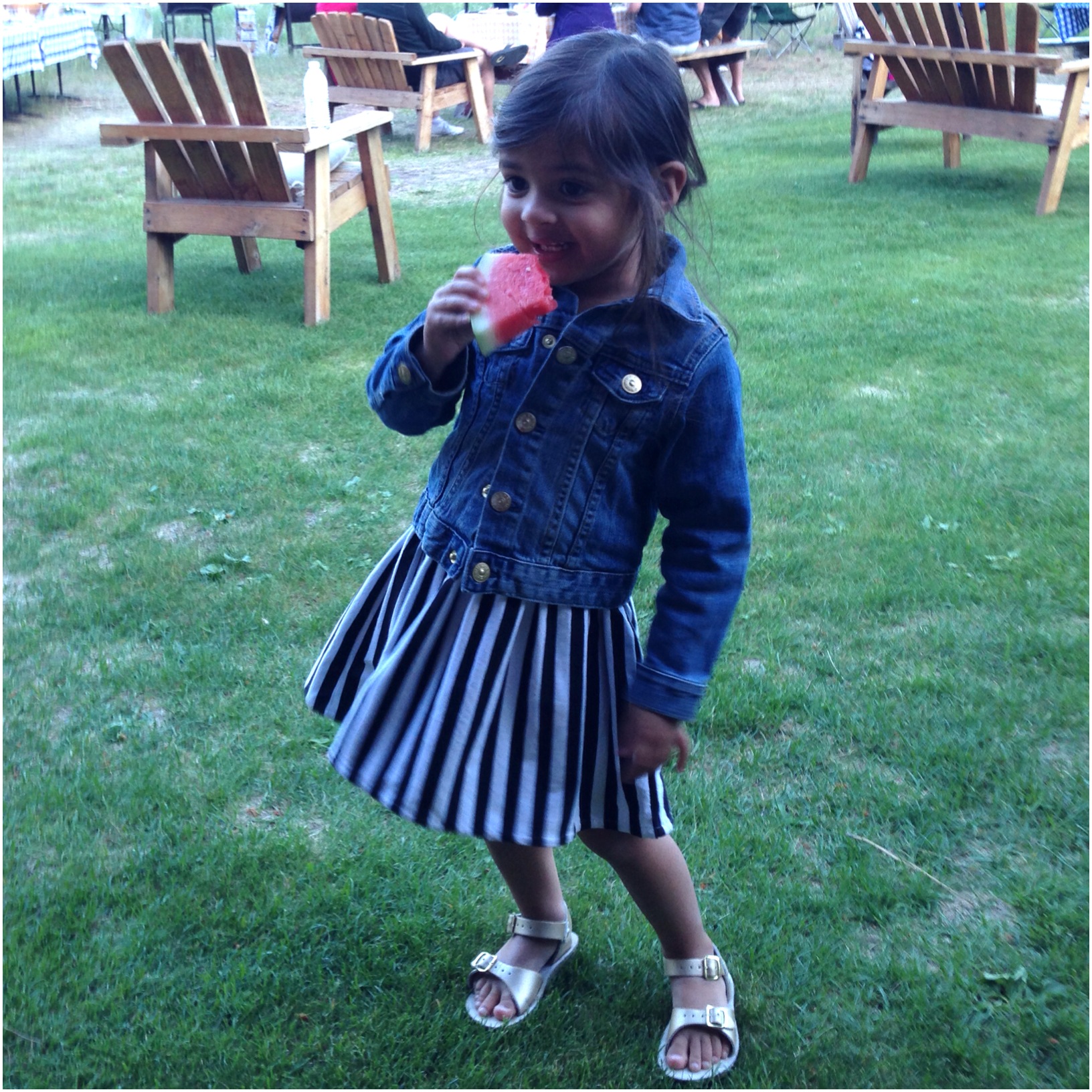 Denim Jacket | H&M . Dress | GAP . Shoes | Saltwater Sandals