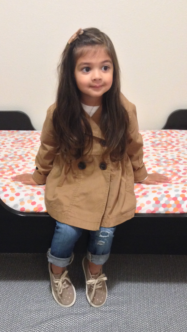 Every woman needs a classic trench coat so why not one for little miss? This piece is a fall staple. An absolute must have. I love that it’s lightweight so she can run wild and how it goes so effortlessly with most items in her closet.