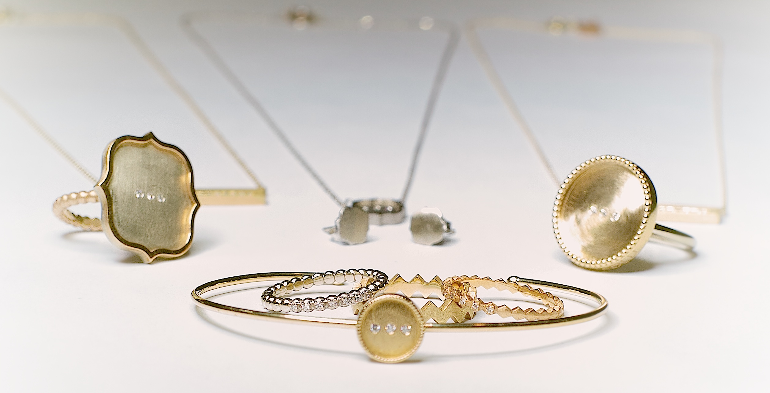 When my daughter, Giuliana, was born in 2011, I wanted a piece of jewelry to represent this most significant moment in my life. Everything on the market at that time had birthstones or engraved/stamped initials or names. I wanted something timeless. Something that I wouldn’t get sick of in 5 years. Something Giuliana would want for herself in 20 years. So I designed the signature Bar Pendant. A small, solid 14k gold bar with 8 tiny diamonds – one for each letter of her name. And my line was born. Designs started pouring out of me. I couldn’t draw them fast enough. But I was scared. I knew what it would take both financially and time-wise to create what I envisioned. 2.5 years later Amour Absolu launched, weeks before the birth of my second daughter, Layla.